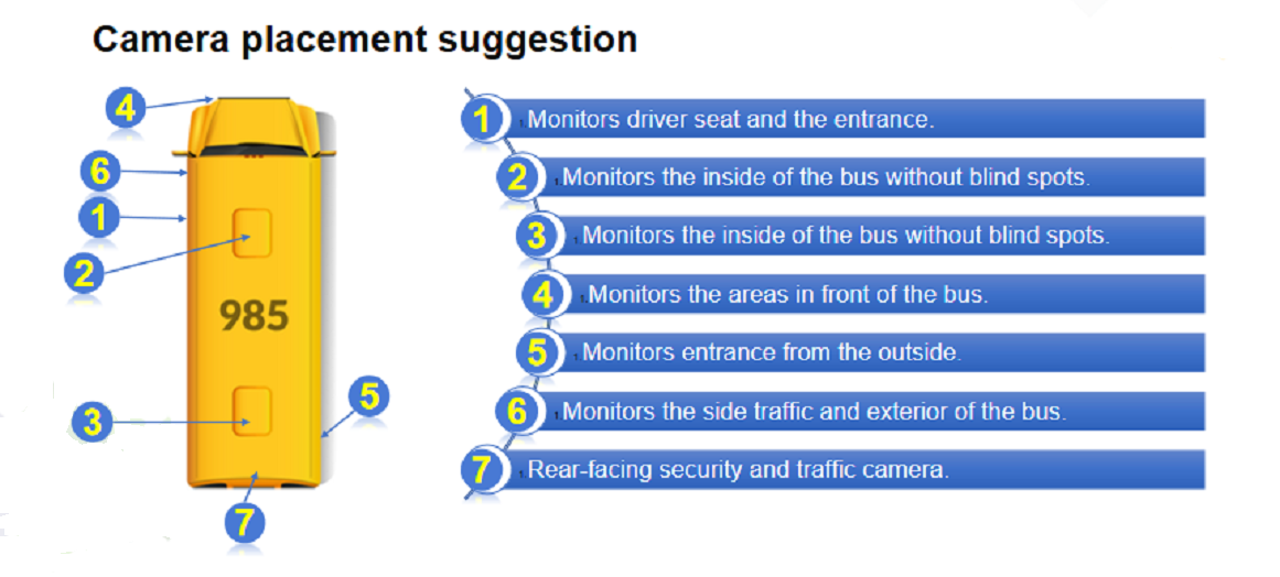 - Capture the bus's interior and exterior for comprehensive monitoring.
